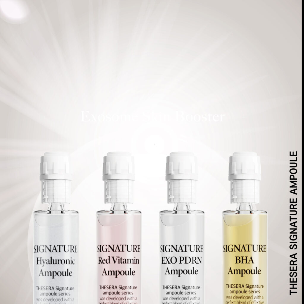 • Thesera eksosoomid – eksosoomid on rakuvälised osakesed, mis kannavad signaalmolekule ja toetavad naha taastumist, elastsust ning kaitsevõimet. Ideaalne valik vananemisilmingute ja stressis naha puhul.