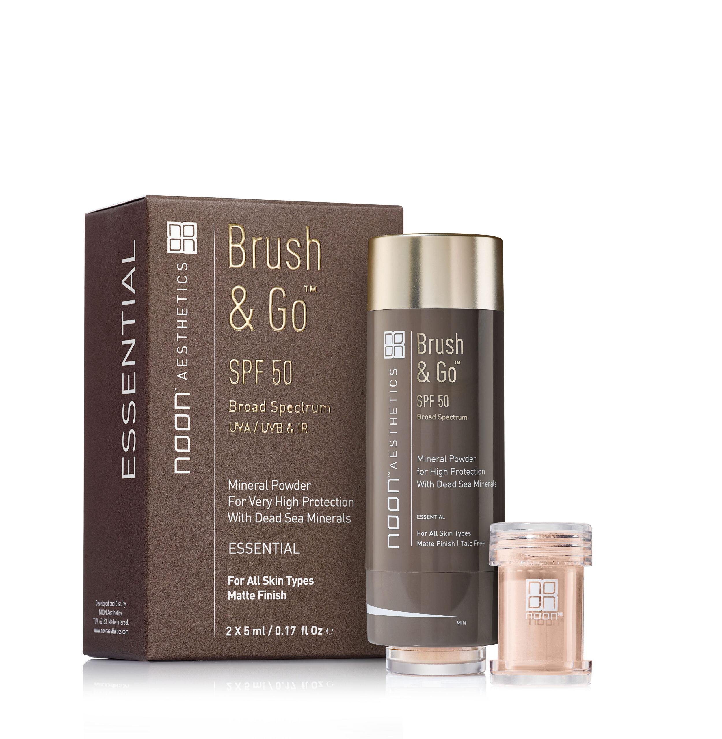 Päikesekaitsepuuder SPF50-ga. Titaandioksiidi ja kapseldatud keemiliste filtrite kombinatsioon loob kaitsekihi UVA/UVB ja infrapunakiirguse (IR) vastu. SPF50 kaitsevahend on mõeldud mugavaks kaitse värskendamiseks päeva jooksul. Kõikidele nahatüüpidele mõeldud toode on rikastatud Surnumere mineraalidega, samas kui rasusele ja probleemsele nahale mõeldud versioon sisaldab lisaks eukalüpti lehtede ja teepuuõli ekstrakte ning hõbedat.