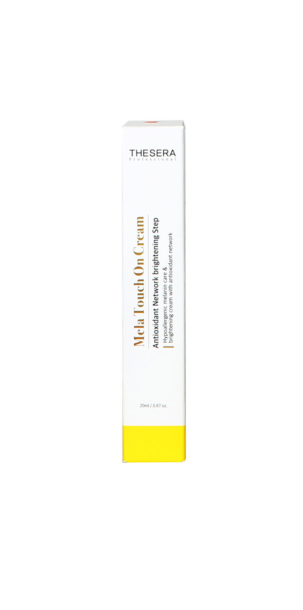 Mela Touch On Cream on kerge, ent tõhus valgendav kreem, mis suunab oma toime sügavale nahakihtidesse, et pärssida melaniini tootmist ja vähendada tumedaid laikude ühtlustamata nahatooni. Kreem kasutab antioksüdantsüsteemi kuue vitamiiniga, et kaitsta nahka UV-kiirguse ja sinise valguse kahjuliku mõju eest ning toetada naha heledamat ja terve välimust.